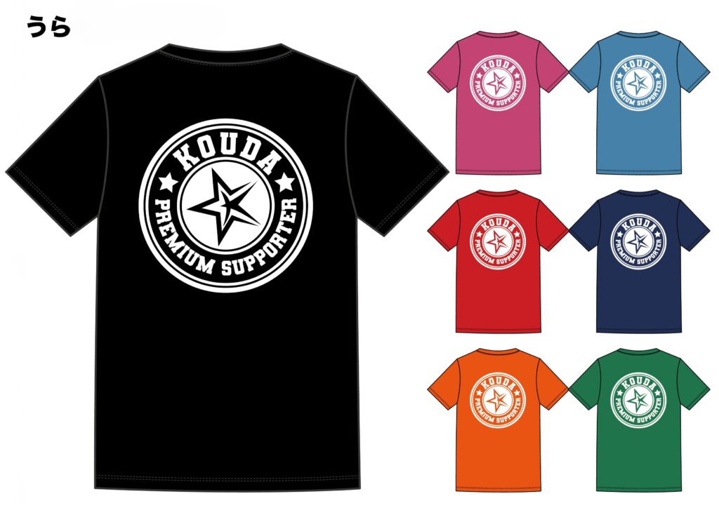 通常オリジナルTシャツは、メインカラーを統一しますが、《こうだ☆ランド》は自分がテンションが上がる色を自由に選んでもらっています。